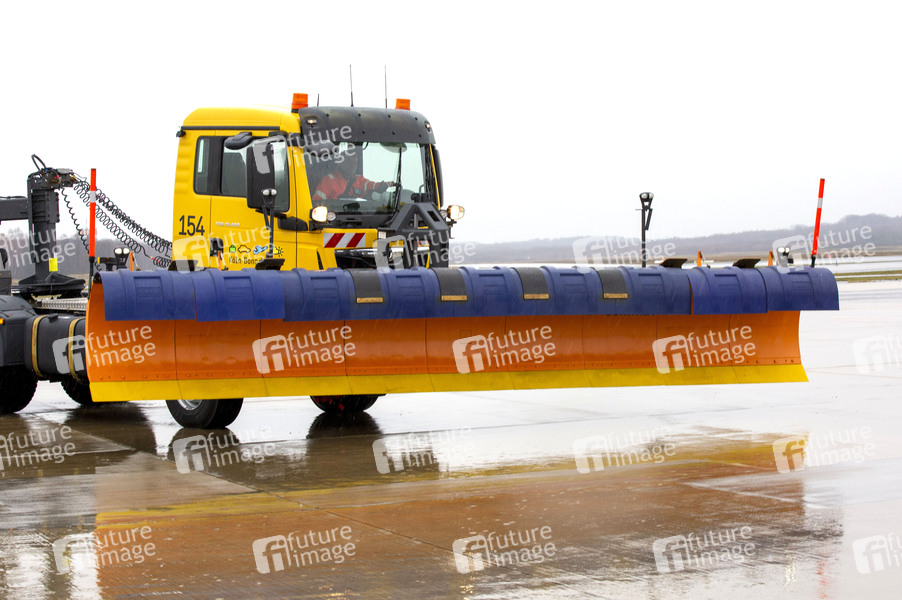 Winterdienst-Saison, Kehrblasgeräte, Schneeschild, Flächenenteisung, Landebahn, Startbahn, Lande- und Startbahn, Aviation, Flugzeuge, Winter, Eis, Schnee, Hightech-Fahrzeuge, Flotte, Sprühfahrzeug, Winterdienst-Container, Regen, Schlechtes Wetter, Minusgrade, Temperaturfall