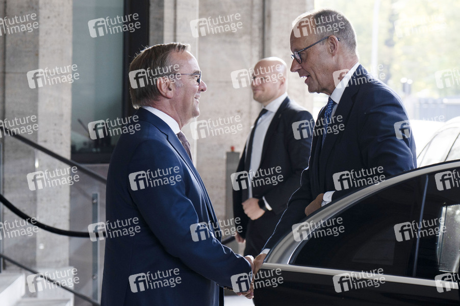 Boris Pistorius und Friedrich Merz bei der Ankunft zur 14. Sitzung des Bundeskabinetts im Bundesministerium der Verteidigung. Berlin, 27.08.2025