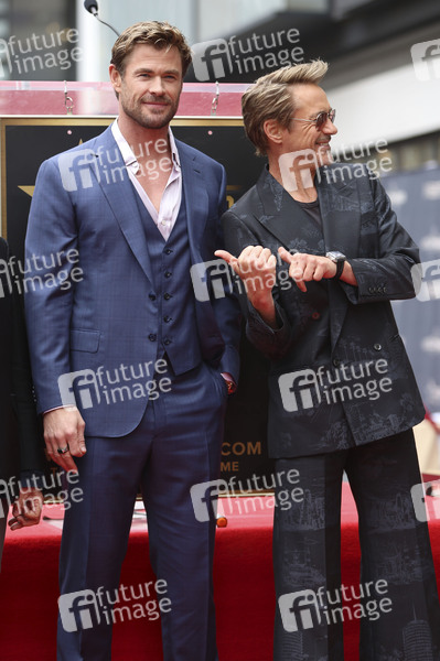 Chris Hemsworth und Robert Downey Jr. bei der Zeremonie zur Verleihung von einem Stern an Chris Hemsworth auf dem Hollywood Walk of Fame. Los Angeles, 23.05.2024
