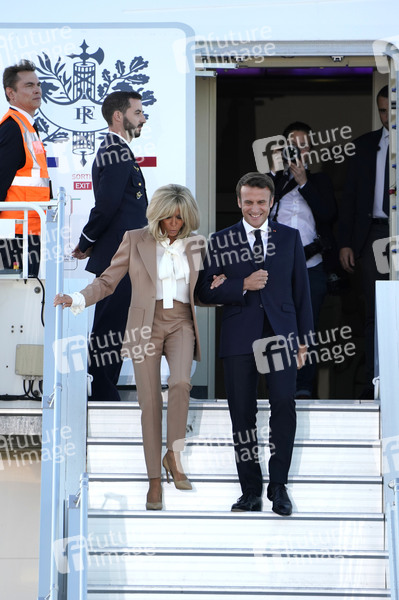 Politiker, Politikerin, Regierungschefs, Politik, Gruppe der Sieben, Gipfeltreffen der Staats- und Regierungschefs der bedeutendsten Industrienationen der Welt, Flughafen, Ankunft, Staatspräsident von Frankreich, La République en Marche, LREM