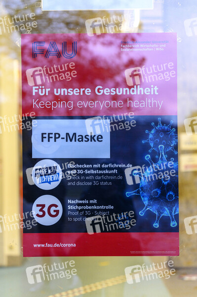 FAU Erlangen-Nürnberg, Universität, Studium, Corona, 2G-Regel, Präsenzveranstaltung, Schutzmaske, Schutzmasken, Atemschutzmasken, Mundschutz, Mund-Schutz, Mundschutzpflicht, Mundschutz-Pflicht, Mund-Nase-Schutz, Mund-Nasen-Schutz, MNS, Ausbreitung, Maskenzwang, Maskenpflicht, Infektionsgefahr der Öffentlichkeit, Eindämmung, Seucheneindämmung, anstecken, infizieren, Vorbeugung, Prävention, schützen, Einschränkung, Verzicht, Seuchenschutz, Corona-Schutz, Virus, Viren, Corona, Coronavirus, Coronaviren, Corona-Virus, Corona-Viren, Ansteckung, Ansteckungsgefahr, Epidemie, Pandemie, Infektion, Infektionen, Corona-Maßnahmen, Symbolfoto, Symbolbild