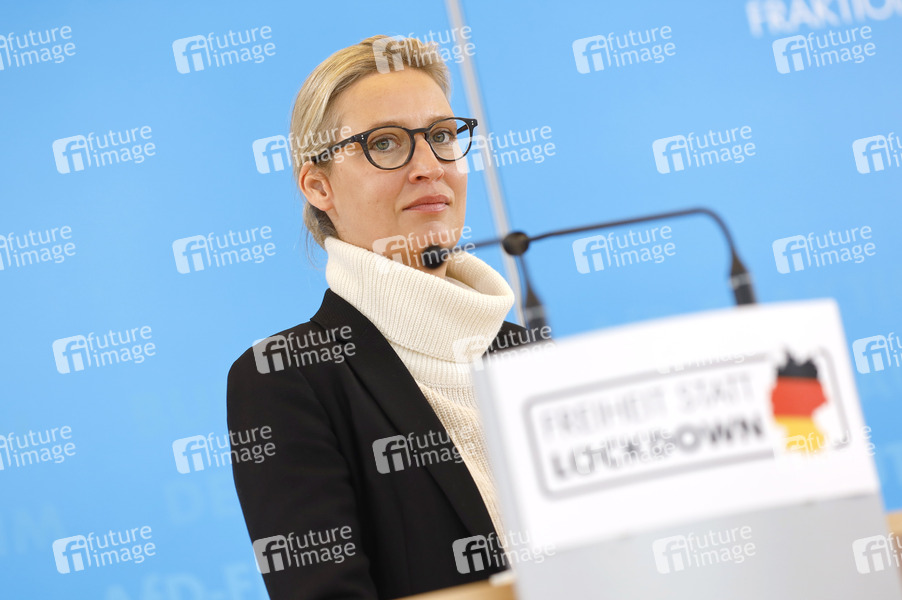 Politik, Pressekonferenz, PK, Reichstag, Sitzung, Regierung, Deutscher Bundestag, Demokratie, Abgeordnete, Parlament, Parlamentsgebäude, Bundesregierung, Volksvertreter, MdB, Mitglied des Bundestages, Politikerin, Co-Vorsitzende der AfD-Bundestagsfraktion, Oppositionsführerin im Bundestag