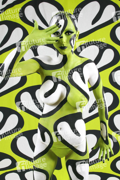 Bodypainting, Stoffdesign Anna Efverlund, Erotik, Frau, nackt, drinnen, weiblich, Muster, Chamäleon, erotic, woman, nude, indoor, female, chameleon