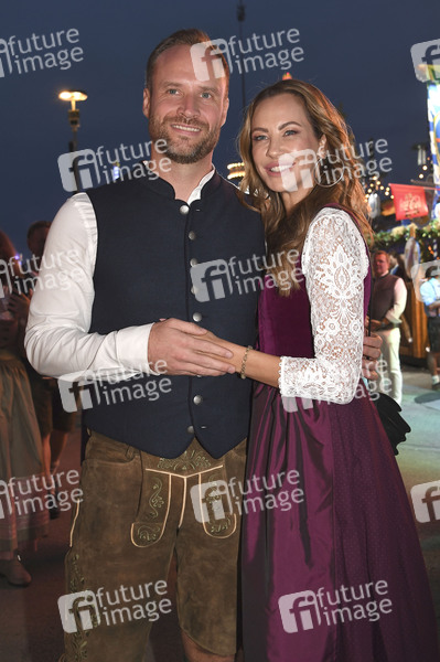 Sandy Meyer-Wölden mit Freund Alexander Müller beim Almauftrieb in der Käfer Wiesn Schänke auf dem 189. Oktoberfest 2024 auf der Theresienwiese. München, 22.09.2024