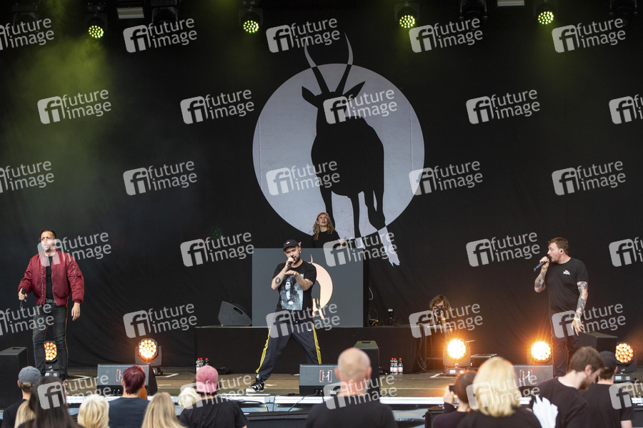 Danger Dan, Koljah und Panik Panzer von der Antilopen Gang live beim Picknick Konzert auf der Zoopark Festwiese. Erfurt, 15.07.2021