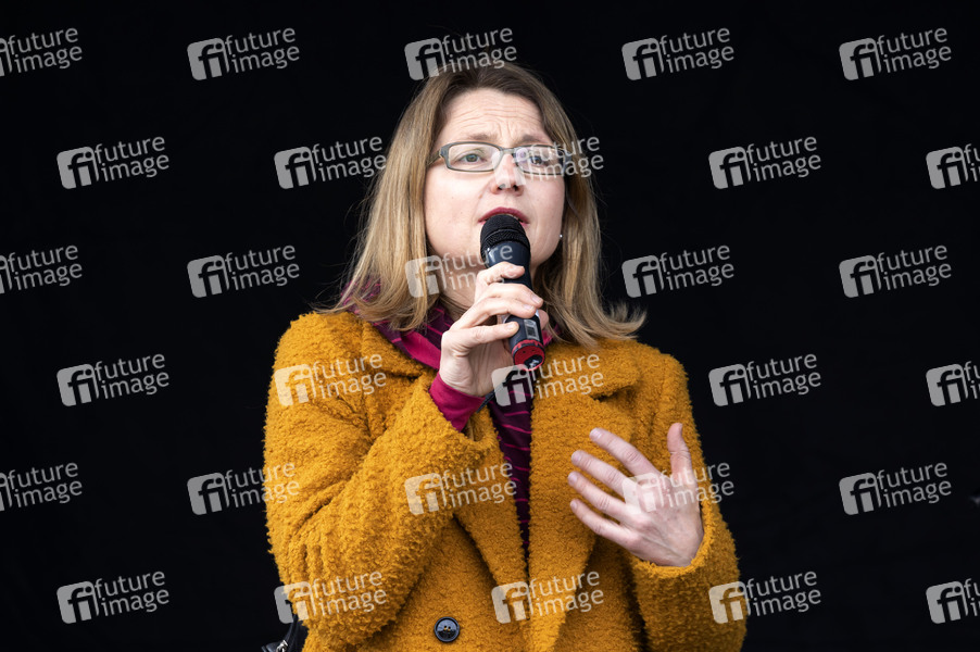 Annekatrin Klepsch bei der Maikundgebung der Partei Die Linke auf dem Alaunplatz. Dresden, 01.05.2021