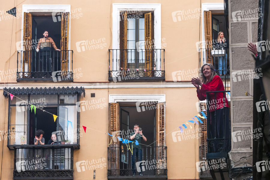 Die Bewohner des angesagten, studentenfreundlichen Viertels Malasana feiern am 47. Tag seit Verhängung des Ausnahmezustands durch die spanische Regierung wegen der Coronakrise. Madrid, 30.04.2020