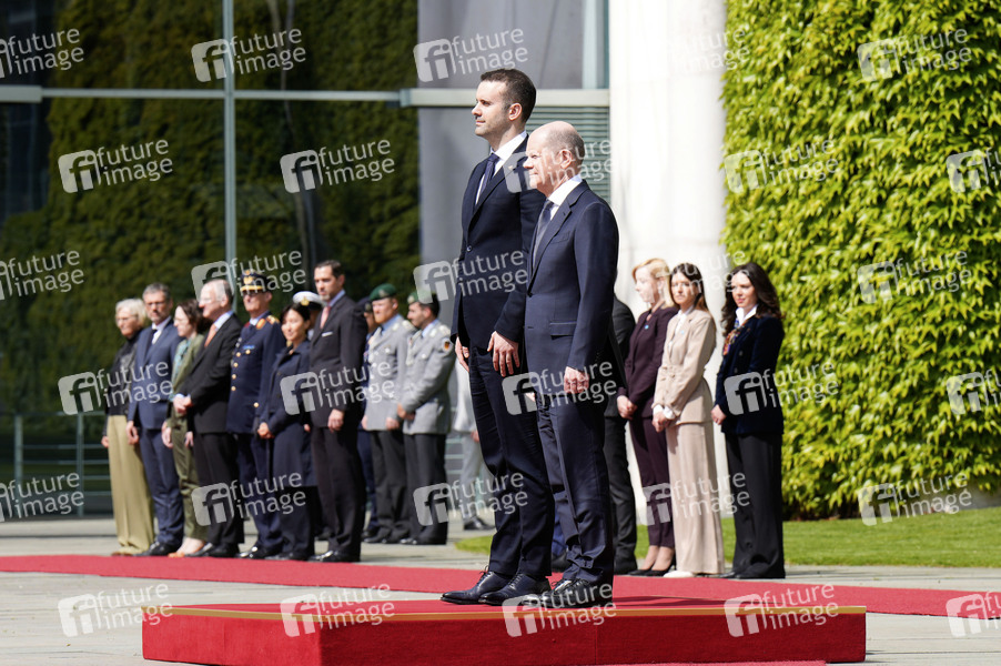 Milojko Spajic und Olaf Scholz beim Antrittsbesuch des Ministerpräsidenten von Montenegro mit militärischen Ehren und zu einem gemeinsamen Gespräch mit anschließendem Pressestatement im Bundeskanzleramt. Berlin, 29.04.2024