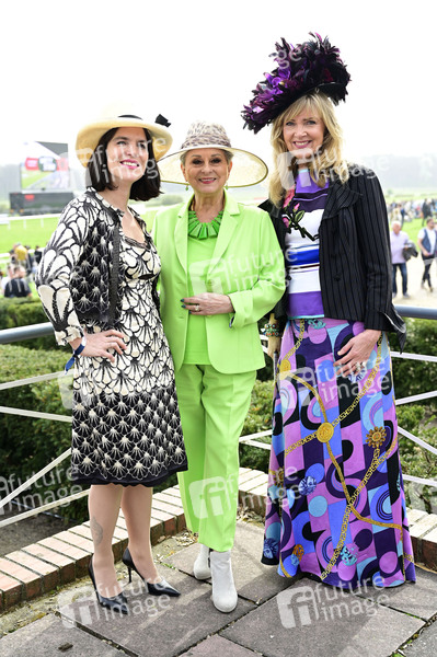 Sarah Würgler, Dagmar Frederic und Nanna Kuckuck bei der Großen Saisoneröffnung 2024 auf der Rennbahn Hoppegarten. Berlin, 31.03.2024