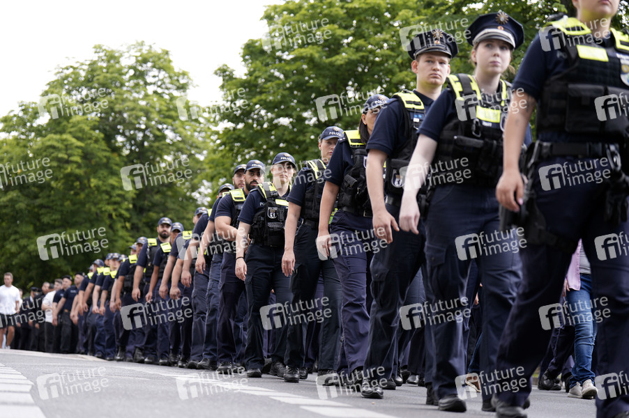 Polizisten in Uniform beim Schweigemarsch für den ermordeten Mannheimer Polizisten Rouven L. vom Potsdamer Platz zur Landesvertretung Baden-Württemberg. Berlin, 07.06.2024