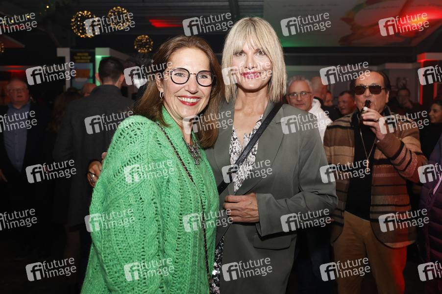 Angela Walentowski und Eva Kaufmann beim Start der zweiten Kunst-Aktion 'Art'n'Schutz' zugunsten des Tier- und Artenschutzes mit einer Vernissage mit Bildern bedrohter Tiere gemalt von Promis in der Galerie Walentowski. Werl, 23.11.2024