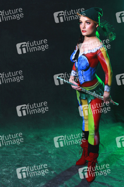 Bodypainting, Erotik, Frau, Mädchen, nackt, drinnen, weiblich, Körperkunst, Kunst, Malerei, Flöte, erotic, woman, girl, nude, indoor, female, body art, body painting, Flute