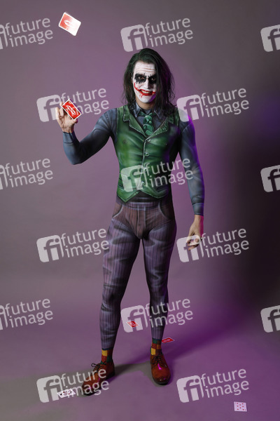 Cosplay, Cosplayer, Bodypainting, Body-Painting, Make-up, Maskenbildnerei, Körperkunst, Körperfarben, Projekt Farbkörper, Farbe, Bemalung, Kunst, Malerei, Comic, DC Comics, Comicfigur, Verbrecher, Psychopath, Batman-Gegner, body painting, body art, project color body, colors, colours, villain, comic character, criminal, psychopath, Batman opponent, Spielkarte, Spielkarten, playing card
