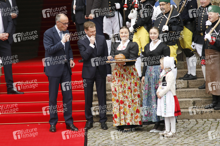 Friedrich Merz und Michael Kretschmer beim Antrittsbesuch des Bundeskanzlers im Freistaat Sachsen in der Sächsischen Staatskanzlei. Dresden, 28.10.2025