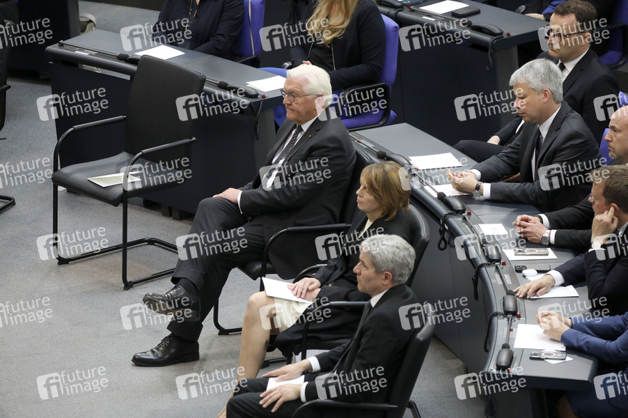 Frank-Walter Steinmeier, Elke Büdenbender und Stephan Harbarth bei der Gedenkstunde im Bundestag zum 80. Jahrestag des Endes des Zweiten Weltkrieges. Berlin, 08.05.2025