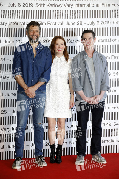Bart Freundlich, Julianne Moore und Billy Crudup beim Photocall und der Pressekonferenz zu 'After the Wedding' auf dem 54. Internationalen Filmfestival Karlovy Vary 2019 im Thermal Hotel. Karlsbad, 29.06.2019