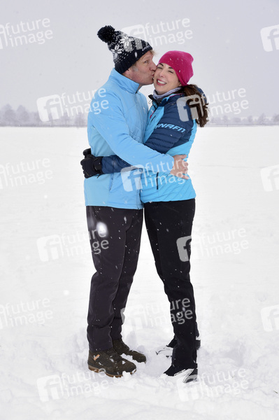 Alexandra Polzin mit Ehemann Gerhard Leinauer beim Winterspaziergang. München, 18.01.2021