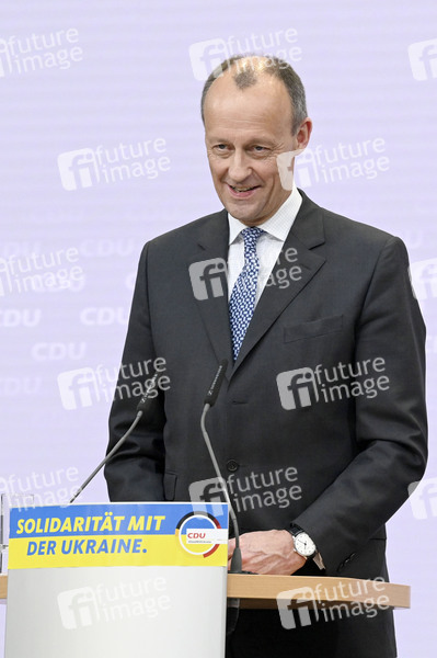 Friedrich Merz bei einer Pressekonferenz zur Wahl im Saarland nach den Gremiensitzungen der CDU im Konrad-Adenauer-Haus. Berlin, 28.03.2022