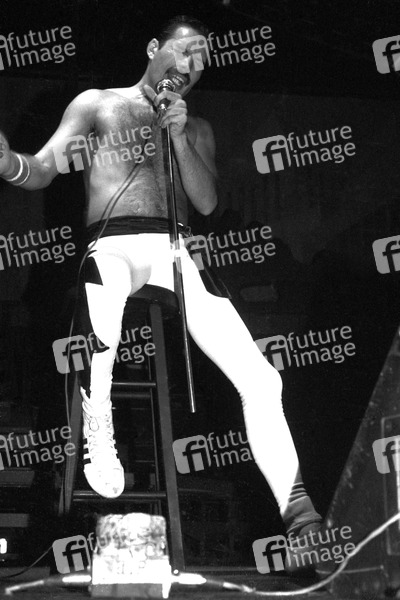 Freddie Mercury von Queen bei einem Konzert der 'Works'-Tour in der Wembley Arena. London, 07.09.1984
