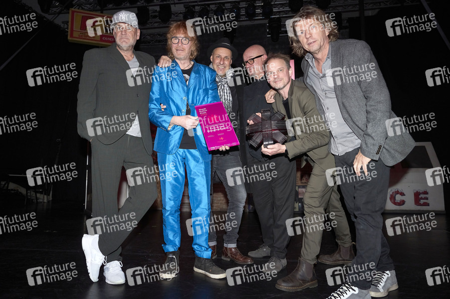 Kai Wingenfelder, Christof Stein-Schneider, Gero Drnek, Thorsten Wingenfelder, Christian Decker und Rainer Schumann bei der Verleihung des Stadtkulturpreises 2022 durch den Freundeskreis Hannover an Fury in the Slaughterhouse in der Orangerie Herrenhausen. Hannover, 29.12.2022
