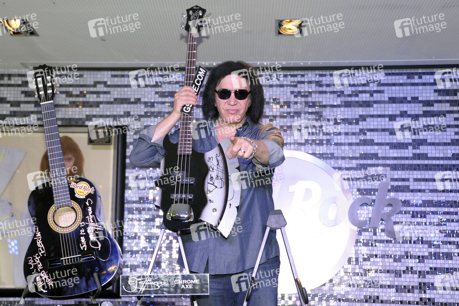 Gene Simmons von Kiss übergibt dem Hard Rock Cafe eine signierte Gitrarre. Berlin, 12.06.2013