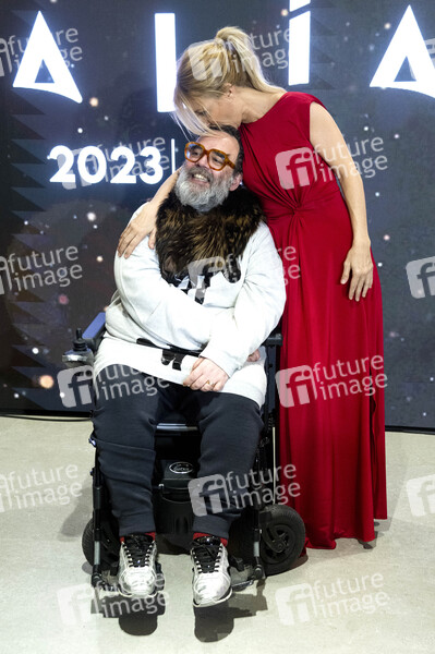 Bob Pop und Cayetana Guillen Cuervo bei der Nominiertenparty der 1. Verleihung des Premios Talia 2023 im CaixaBank Space. Madrid, 06.05.2023