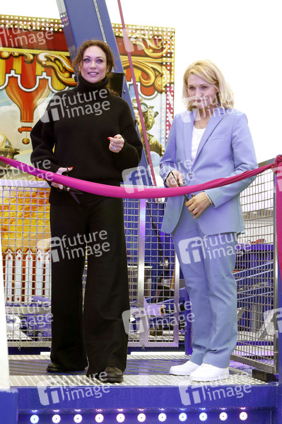 Lilly Becker und Marilyn Fackler bei der Einweihung des weltweit höchsten transportablen Flugkarussells 'Evolution - Flight Beyond' auf dem Hamburger Dom. Hamburg, 22.03.2024