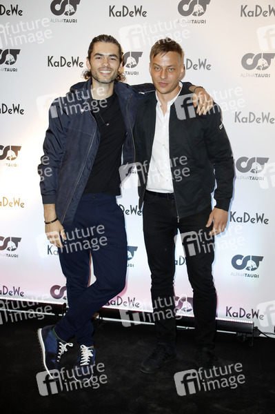 Nik Xhelilaj und Tom Wlaschiha bei der Eröffnung des ersten temporären AlphaTauri 3D-Knit Labs im KaDeWe. Berlin, 03.04.2019