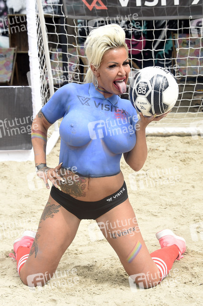 Ginger Costello-Wollersheim beim Sexy Soccer 2021 Nacktfußballspiel Deutschland gegen England am Charlies Beach. Berlin, 24.06.2021
