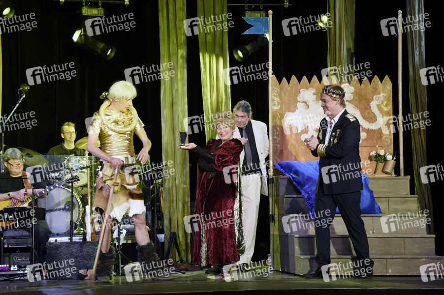 Severin Groebner, Constanze Lindner, Aron Altmann und Alexander Liegl bei der Generalprobe zum Streaming von 'Siegfried - Götterschweiß und Heldenblut, Ein Germanical' im Kleinen Theater. Haar, 07.03.2021