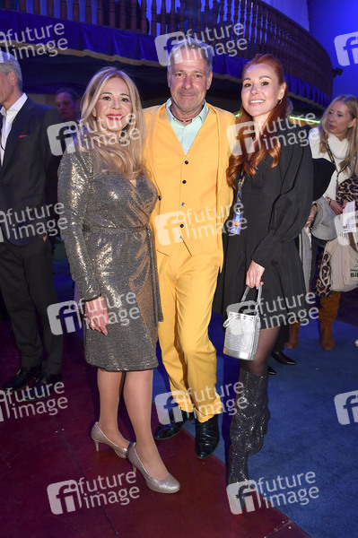 Julia Kent, Christian Swoboda und Tiger Kirchharz bei der Premiere des Circus Krone Tourneeprogramms 'Farbenspiel - Gold Edition' im Circus Krone Zelt auf der Theresienwiese. München, 10.04.2025