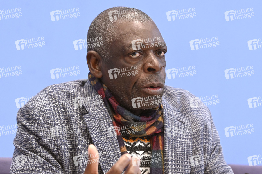 David Macou bei der Bundespressekonferenz zum Schicksal der ehemaligen DDR-Vertragsarbeiter aus Mosambik und ihre Entschädigungsforderungen im Haus der Bundespressekonferenz. Berlin, 30.09.2024