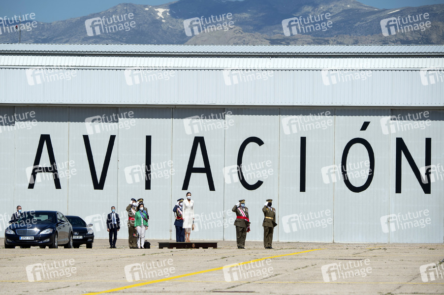 Königin Letizia von Spanien bei der Zeremonie der Übergabe der Nationalflagge an die ACAVIET (Luftfahrtakademie der Armee) in der Helipuerto Base Coronel Mate. Colmenar Viejo, 07.05.2021