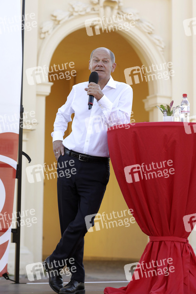 Olaf Scholz bei einem öffentlichen Bürgergespräch vor dem Brandenburger Tor. Potsdam, 30.07.2021