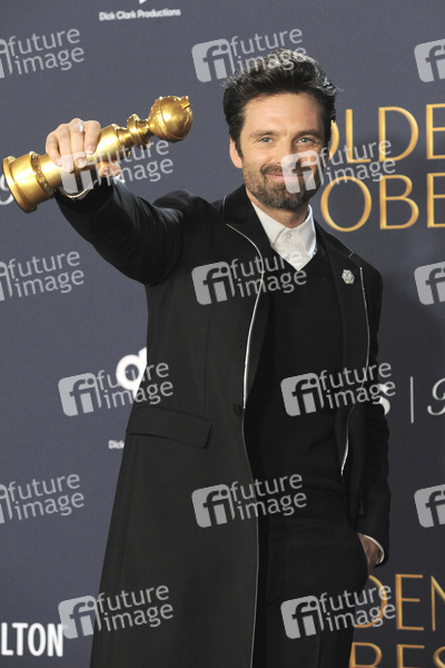 Sebastian Stan mit dem Preis für den besten Komödien-Hauptdarsteller in 'A Different Man' bei der Verleihung der 82. Golden Globe Awards 2025 im Beverly Hilton Hotel. Beverly Hills, 05.01.2025