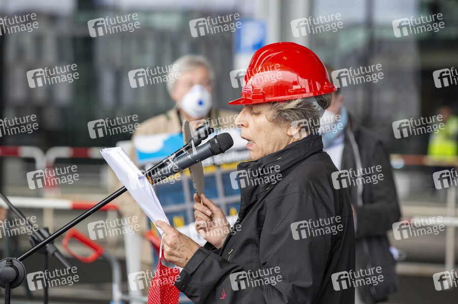 Protestaktionen von Mitgliedern des Bündnisses 'Am Boden bleiben' bei der Eröffnung des Flughafens Berlin-Brandenburg (BER). Schönefeld, 31.10.2020