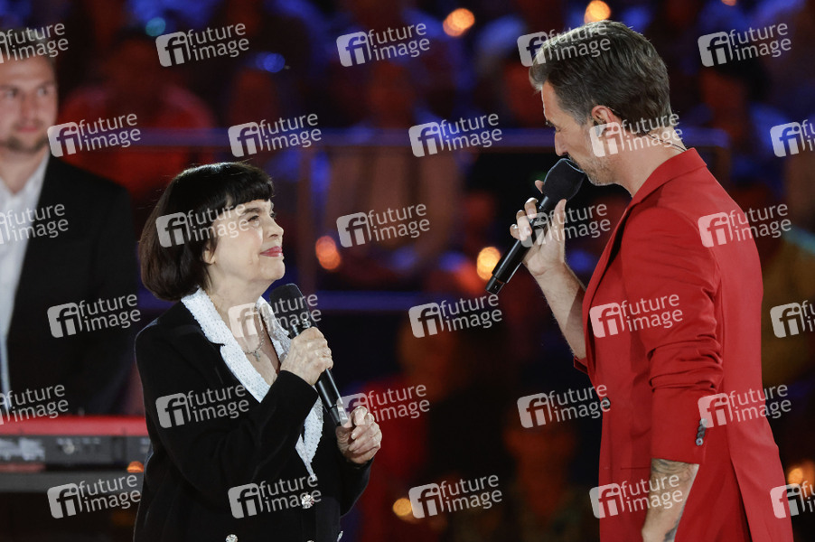 Mireille Mathieu und Florian Silbereisen in der TV-Show 'Schlagerbooom Open Air 2025 - Die Berge leuchten!' live aus dem Stadion Kitzbühel. Kitzbühel, 21.06.2025