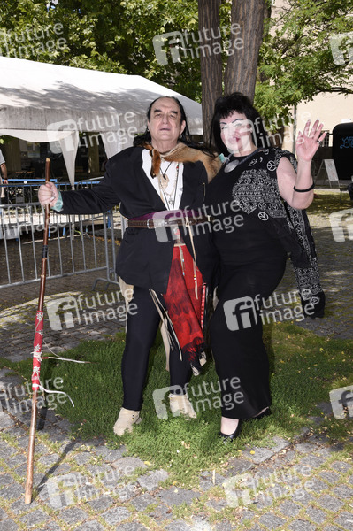 Willy Michl mit Ehefrau Cora beim Pressetermin zum Konzert von Willy Michl zu seinem 70. Geburtstag im Rahmen des Eulenspiegel Flying Circus im Innenhof des Deutschen Museums. München, 02.07.2020