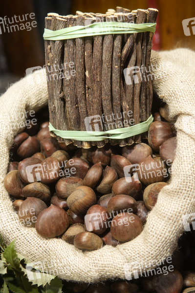 Maronen auf dem Weihnachtsmarkt WeihnachtsZauber Gendarmenmarkt 2024 auf dem Bebelplatz an der Staatsoper. Berlin, 27.11.2024
