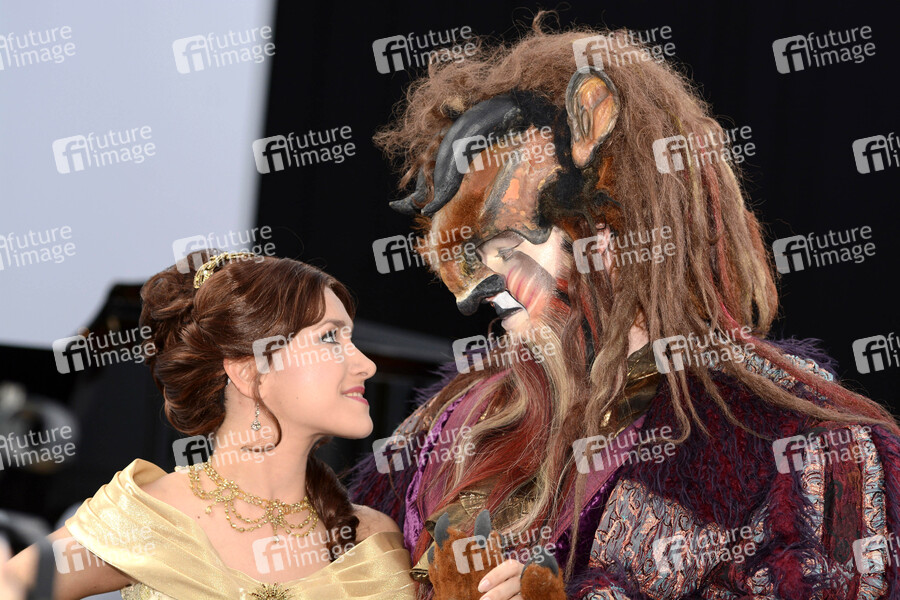 Kitti Jenes (Belle) und Sandor Barkoczi (Biest) bei der Präsentation des Disney Musicals 'Die Schöne und das Biest' im Opernhaus. Hannover, 28.05.2014
