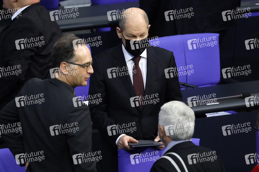 Heiko Maas und Olaf Scholz bei der Rede von UN-Generalsekretär Guterres anlässlich 75 Jahre Vereinte Nationen im Plenum im Reichstagsgebäude. Berlin, 18.12.2020