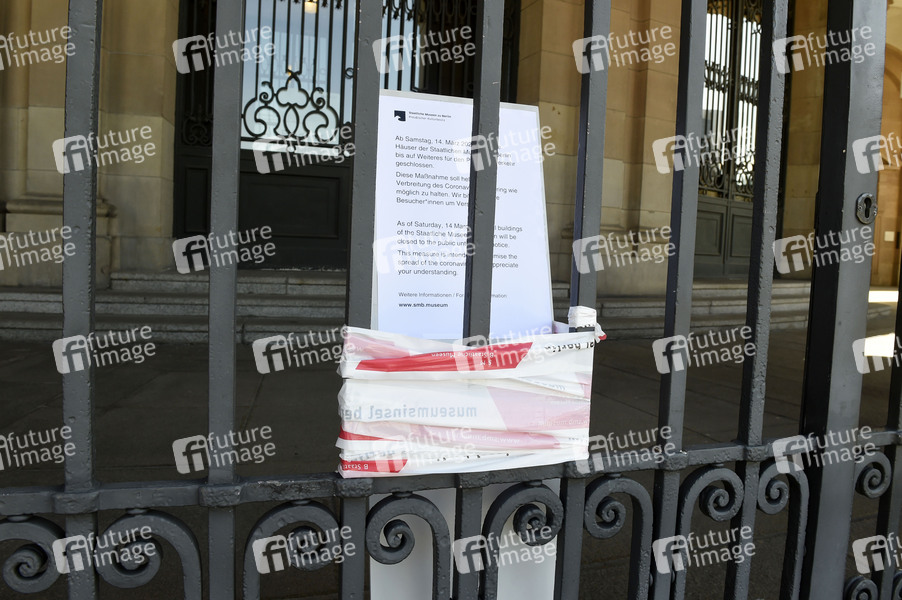 Das Bode-Museum ist geschlossen. Seit Freitag sind die staatlichen Theater-, Opern- und Konzerthäuser komplett geschlossen, genauso wie die Museen, Gedenkstätten und Bibliotheken. Dem Beispiel der staatlichen Kultureinrichtungen folgen auch die meisten private Bühnen. Ab kommender Woche schließen auch Schulen und Kitas. Berlin, 14.03.2020