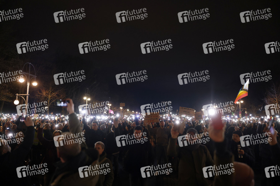 Brandmauer, Lichtermeer gegen Rechts, Demokratie, Demonstration, Demonstranten, Demo, Kundgebung, Protest, Aktion, Banner, Parolen, Politik