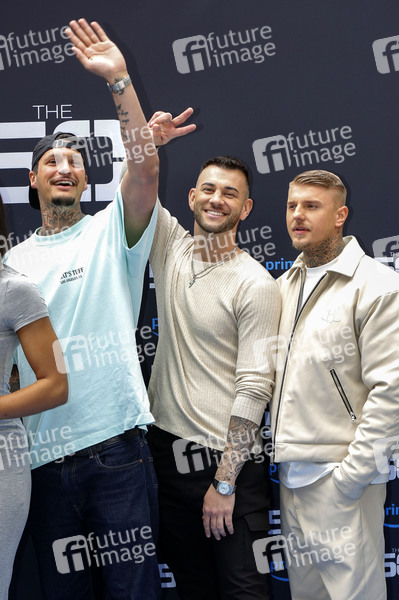 Yasin Mohamed, Serkan Yavuz und Paco Herb beim Photocall zur Amazon Prime Video Reality-Show 'The 50' in der Wolkenburg. Köln, 09.04.2024
