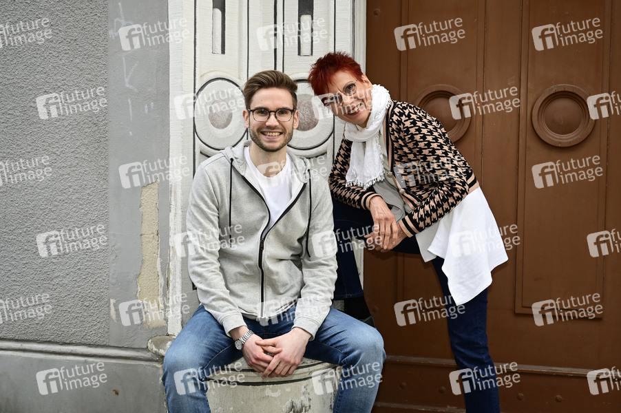 Lukas Natschinski mit Mutter Gundula Natschinski bei einer exklusiven Sightseeing-Tour in der Brüderstraße am Schönhof in der Görlitzer Altstadt. Görlitz, 20.04.2025