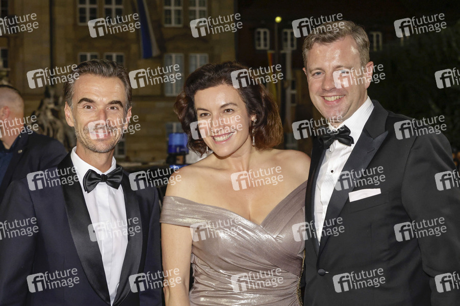 Florian Silbereisen und Dorothee Bär mit Ehemann Oliver Bär beim Staatsempfang nach der Eröffnung der 113. Richard-Wagner-Festspiele 2025 mit der Neuinszenierung von 'Die Meistersinger von Nürnberg' im Neuen Schloss Bayreuth. Bayreuth, 25.07.2025
