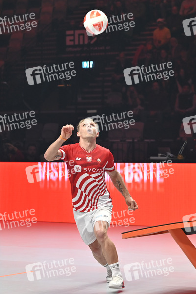 Adrian Duszak (Polen) beim Man Single Finale Rumanien vs Polen bei der Teqball Weltmeisterschaft 2022 in der Kia Metropole Arena. Nürnberg, 27.11.2022