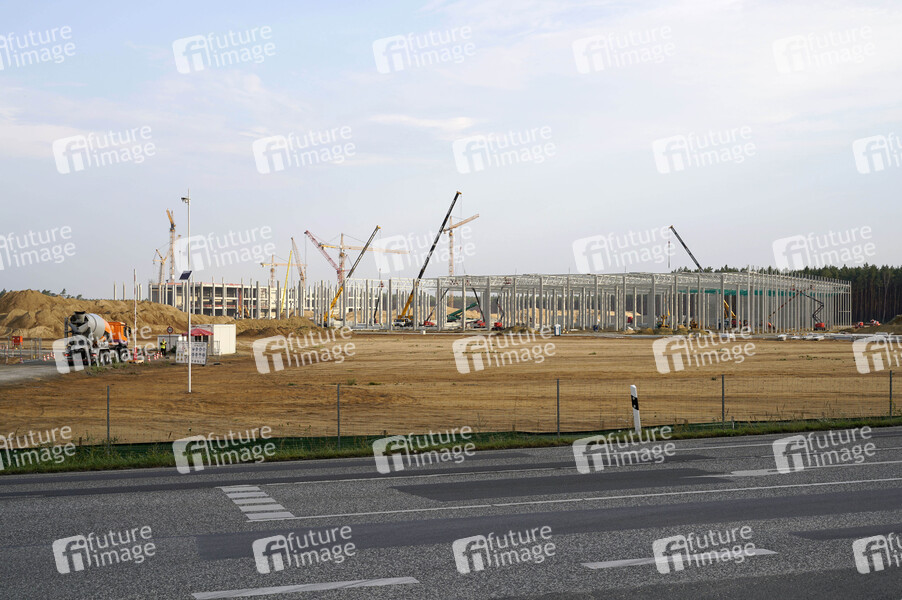 Tesla, Elektroauto, Elektrofahrzeuge, PKW, Auto, Model Y, Model 3, Großfabrik, Automobilhersteller, Baustelle, Bauen, Baubranche, Bau-Branche, Bauarbeiter, Bauarbeiten, Großbaustelle, Kran, Kräne, Baustelle