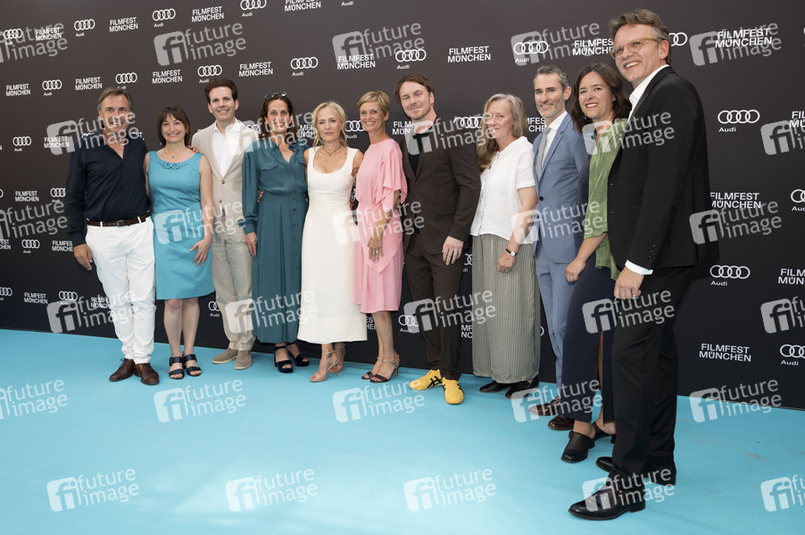 Thomas Linsmayer, Julia Weigl, Gillian Anderson, Raynor Winn, Christoph Gröner mit Team bei der Premiere des Kinofilms 'Der Salzpfad / The Salt Path' und der Verleihung des CineMerit Awards auf dem 42. Filmfest München 2025 im Deutschen Theater. München, 01.07.2025