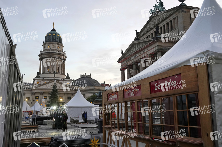 Aufbau vom Weihnachtsmarkt 'WeihnachtsZauber Gendarmenmarkt'. Berlin, 13.11.2021